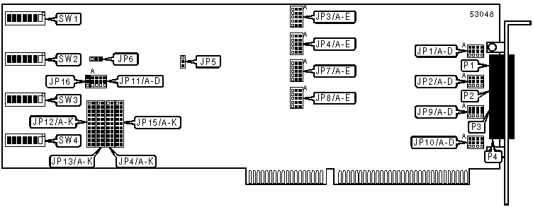 Note:JP12 sets the interrupt for port 1. The settings for JP13 through JP15 are identical and set the interrupts for ports 2 through 4, respectively. | |||||