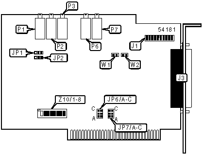 Note: A total of 64 base address settings are available. The switches are a binary representation of the decimal memory addresses. Z10/1 is the Most Significant Bit and switch Z10/6 is the Least Significant Bit. The switches have the following decimal values: Z10/1=512, Z10/2=256, Z10/3=128, Z10/4=64, Z10/5=32, Z10/6=16. Turn off the switches and add the values of the switches to obtain the correct memory address. (On=1, Off=0) | |||||||