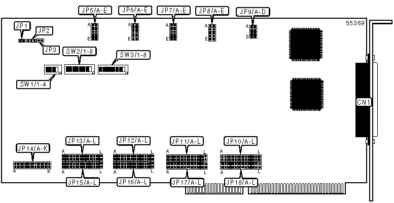 Note: A total of 96 base address settings are available. The switches are a binary representation of the decimal memory addresses. SW1/7 is the Least Significant Bit, and switch SW1/1 is the Most Significant Bit. Turn off the switches and add the values of the switches to obtain the correct memory address. (Off=1, On=0). Low address settings will leave some ports disabled. Ports may not be assigned addresses below 100h. | |||||||||||