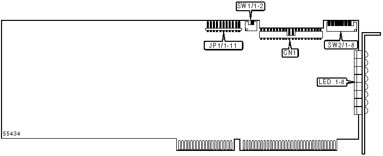 Note: A total of 255 base address settings are available. The switches are a binary representation of the decimal memory addresses. SW1/8 is the Most Significant Bit and switch SW1/1 is the Least Significant Bit. The switches have the following decimal values: SW1/8=32768, SW1/7=16384, SW1/6=8192, SW1/5=4096, SW1/4=2048, SW1/3=1024, SW1/2=512, SW1/1=256. Turn off the switches and add the values of the switches to obtain the correct memory address. (Off=1, On=0) | |||||||