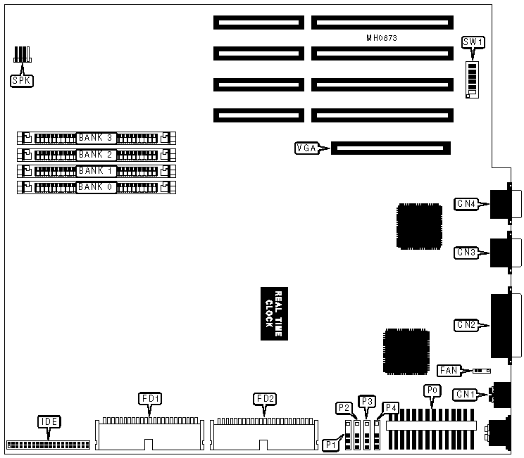 VGA feature connector, floppy drive interface, IDE interface, parallel port, serial port, VGA port, bus mouse |