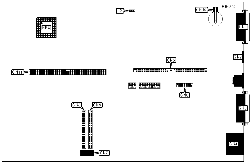 Floppy drive interface, hard drive interface, parallel port, PS/2 mouse port, riser card, serial port, video port |