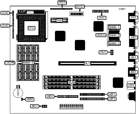 Note: Board accepts x 32 SIMMs. The location of banks 0 & 1 are unidentified. | ||