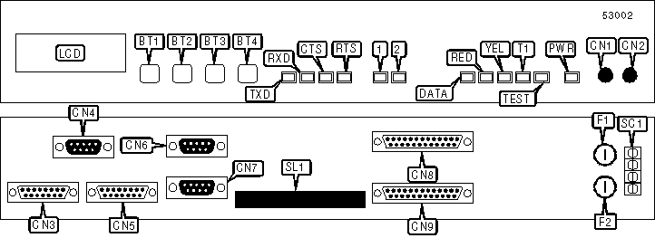 TXD, RXD, CTS, and RTS LEDs indicate status of data port 2 |