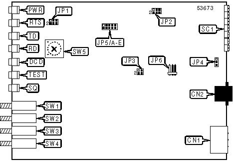 Note:Modem can be made to perform self-test by holding down SW2 and SW4. The DCD, TEST, and SQ LEDs should go on, and the RD LED should go off. | |||