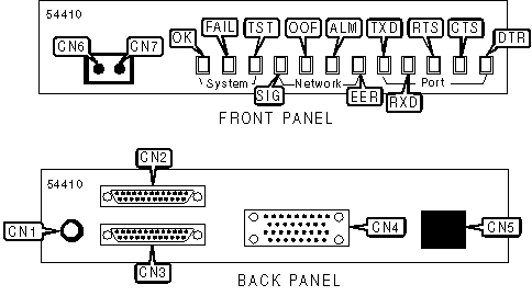 DTE/DCE port (2 RS-232), network interface via RJ-48 connector, power jack, DTE port, monitor connector |